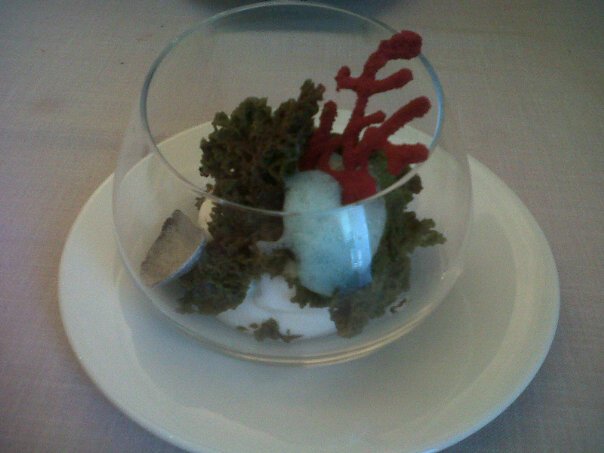 Mi primer contacto con la cocina de Diego Guerrero fue una comida de negocios con I.V. en 2011 después de su segunda estrella Michelín en el club allard de la cual os traigo el recuerdo de su afamado postre, La Pecera.